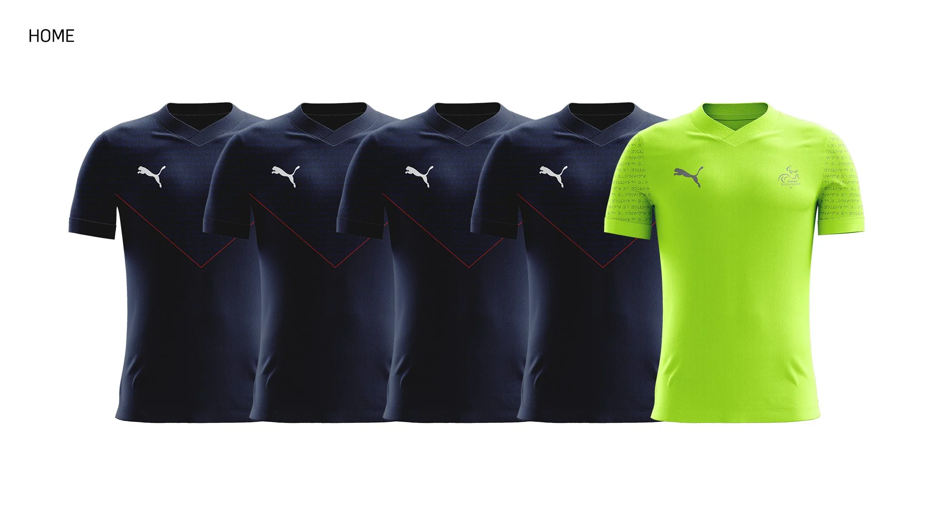 Puma approached my great friends at Two Blind Brothers in advance of the Tokyo 2020 Paralympic Games to collaborate with them on a uniform design for France’s 5-a-side, or “cecifoot”, football team. 5-a-side football is exclusively for athletes with a vision impairment. If you’re reading this and have never heard of this sport, stop and go to YouTube right now. What these athletes do is absolutely incredible. I had the honor of taking on the concepting and design of the jerseys.